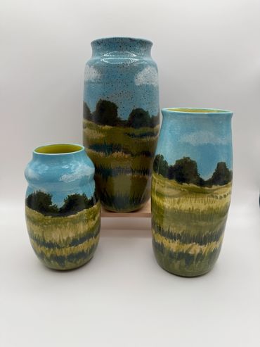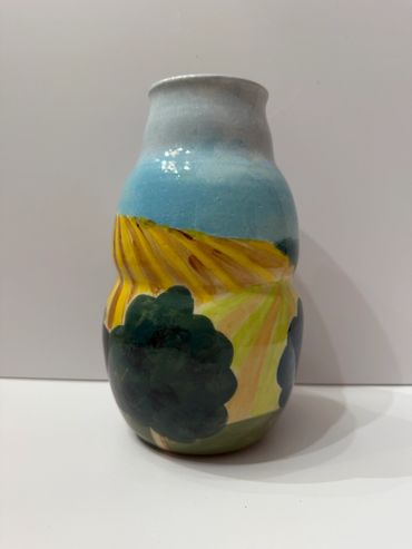 I create functional art through traditional pottery methods, producing limited-batch collections of one-of-a-kind pieces. Each piece is hand-thrown on the potter’s wheel, then carefully hand-carved and painted. Drawing inspiration from both the East and West, I contrast the bold colors, patterns, and landscapes of the West with the rolling hills, muted tones, and folk traditions of the East. Through my work, I strive to evoke a sense of connection, nostalgia, and appreciation for the beauty in everyday objects, allowing each piece to bring warmth and meaning to daily life.