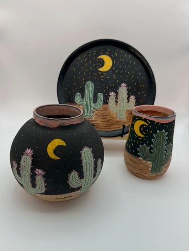 I started taking classes at a local pottery studio in June 2022, then fell completely in love with the medium. I worked in the studio every night to keep perfecting my craft. I wanted to share my love for pottery and have started selling at craft fairs and online. I hope you enjoy my work as much as I love making it.